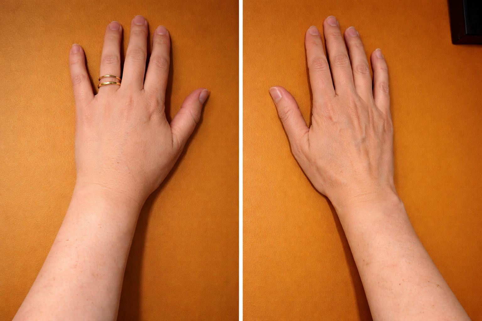 반지가 잘 빠지지 않거나, 손을 쥐는 동작이 둔해지면
